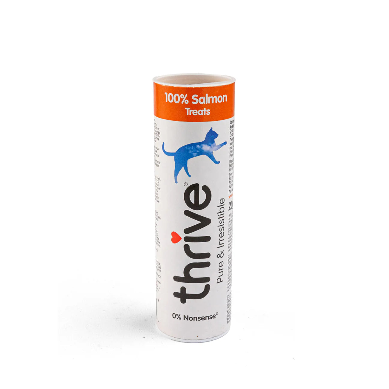 We love the reaction we get from our cats when we give them Thrive Salmon treats. Made with 100% Salmon and no added sugar, you don't need to feel guilty about giving them one or two extra treats at the end of the day. The treats are made using a gentle freeze-drying process, ensuring the retention of all nutrients and the enhancement of flavour.