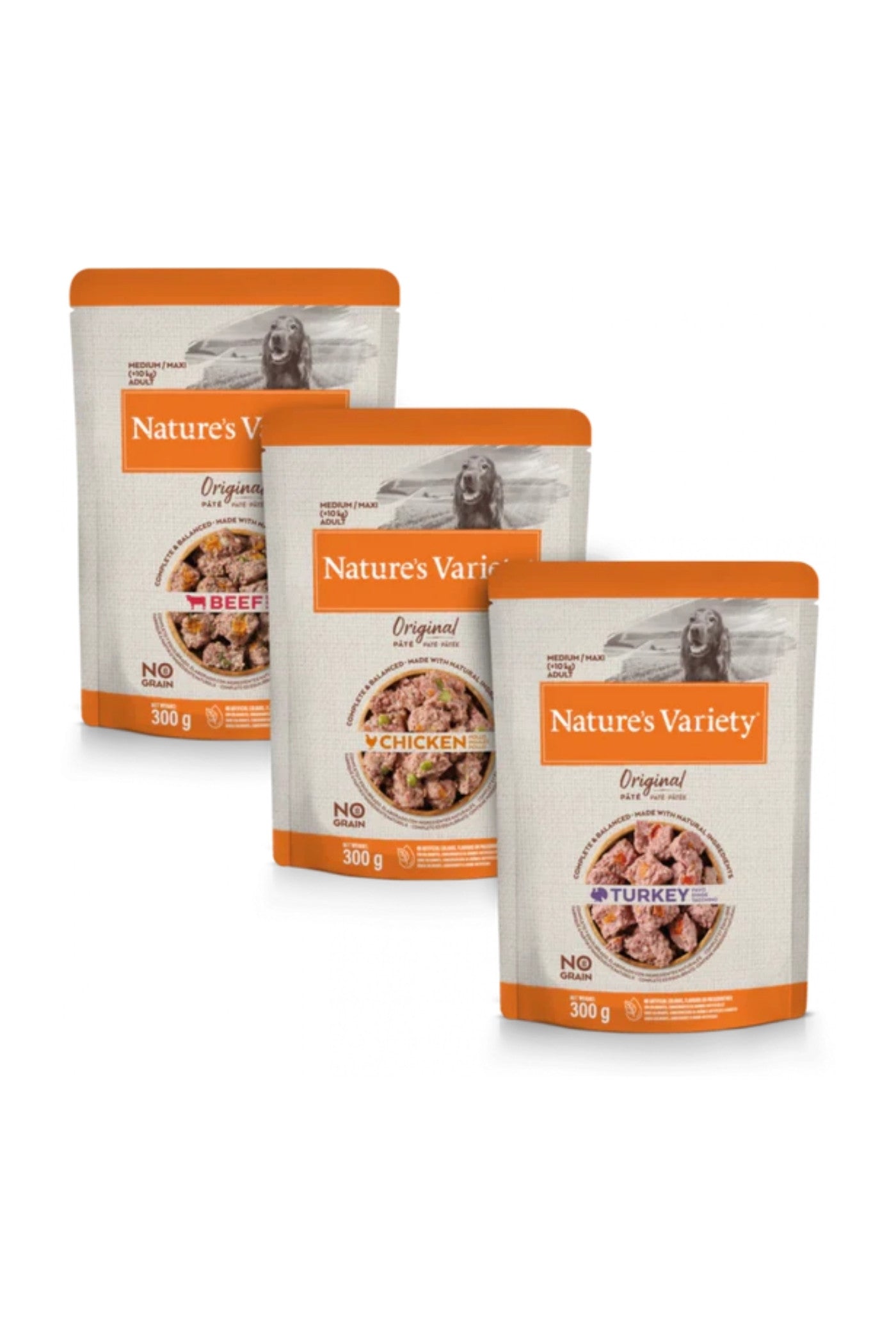 This selection pack of Nature's Variety Original Pâté contains 8 complete and balanced pouches of our high quality, nutritious wet dog food. Three different proteins to choose from will give your dog the tasty variety they need: