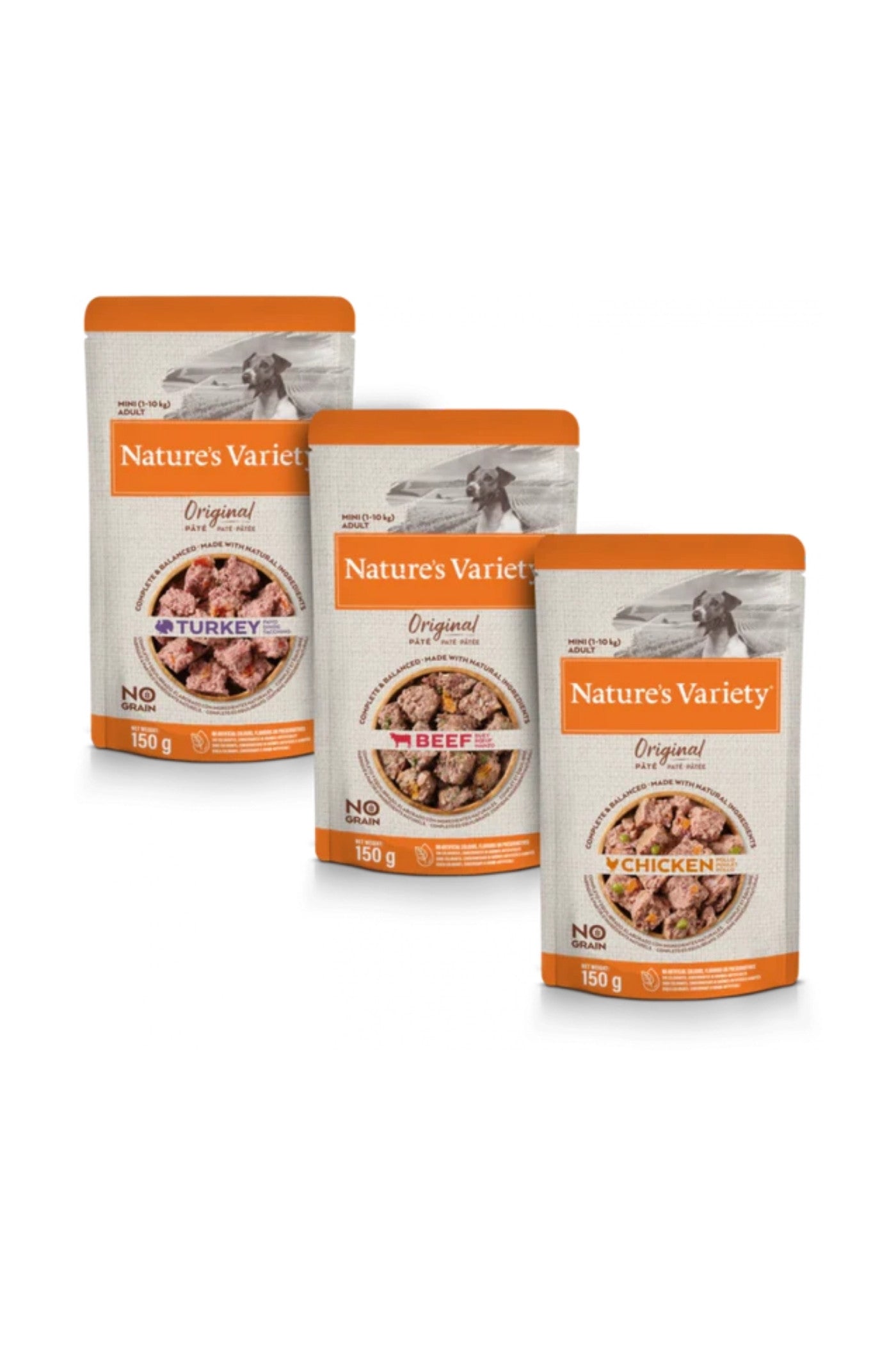 This selection pack of Nature's Variety Original Pâté contains 8 complete and balanced pouches of our high quality, nutritious wet dog food. Three different proteins to choose from will give your small (mini 1-10kg) breed dog the tasty variety they need: