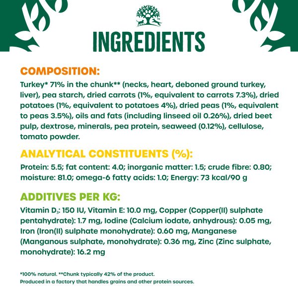 Crafted with a handful of nature's nourishing ingredients and combined with turkey; a source of protein and essential minerals.