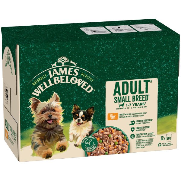 OUR RECIPE FOR HEALTHY LIVING James Wellbeloved Turkey and Rice small breed dog food is crafted using a wholesome recipe your pet will love.