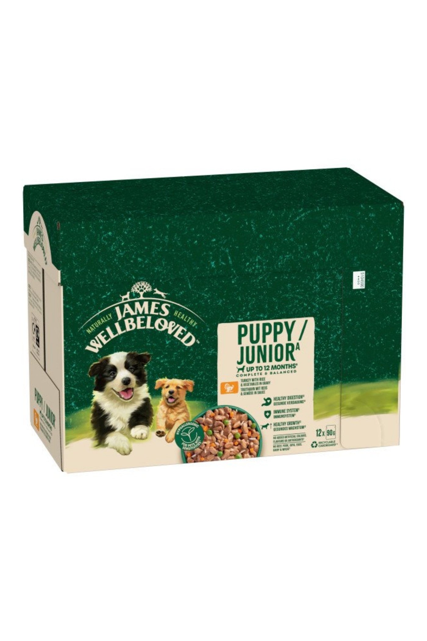 OUR RECIPE FOR HEALTHY LIVING James Wellbeloved Turkey and Rice puppy food in gravy is crafted using a wholesome recipe your pet will love.
