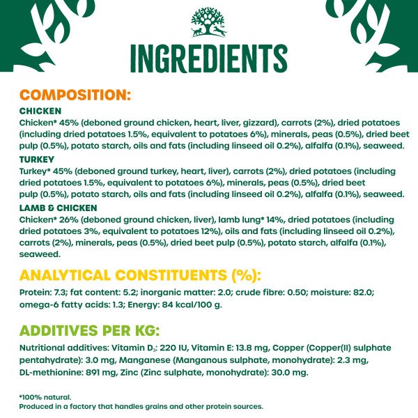GRAIN FREE DOG FOOD THAT'S EASY TO DIGEST FOR PETS WITH GRAIN SENSITIVITIESNATURAL DEFENCES - Wet dog food with Vitamins & Minerals to help support senior dogs' immune system