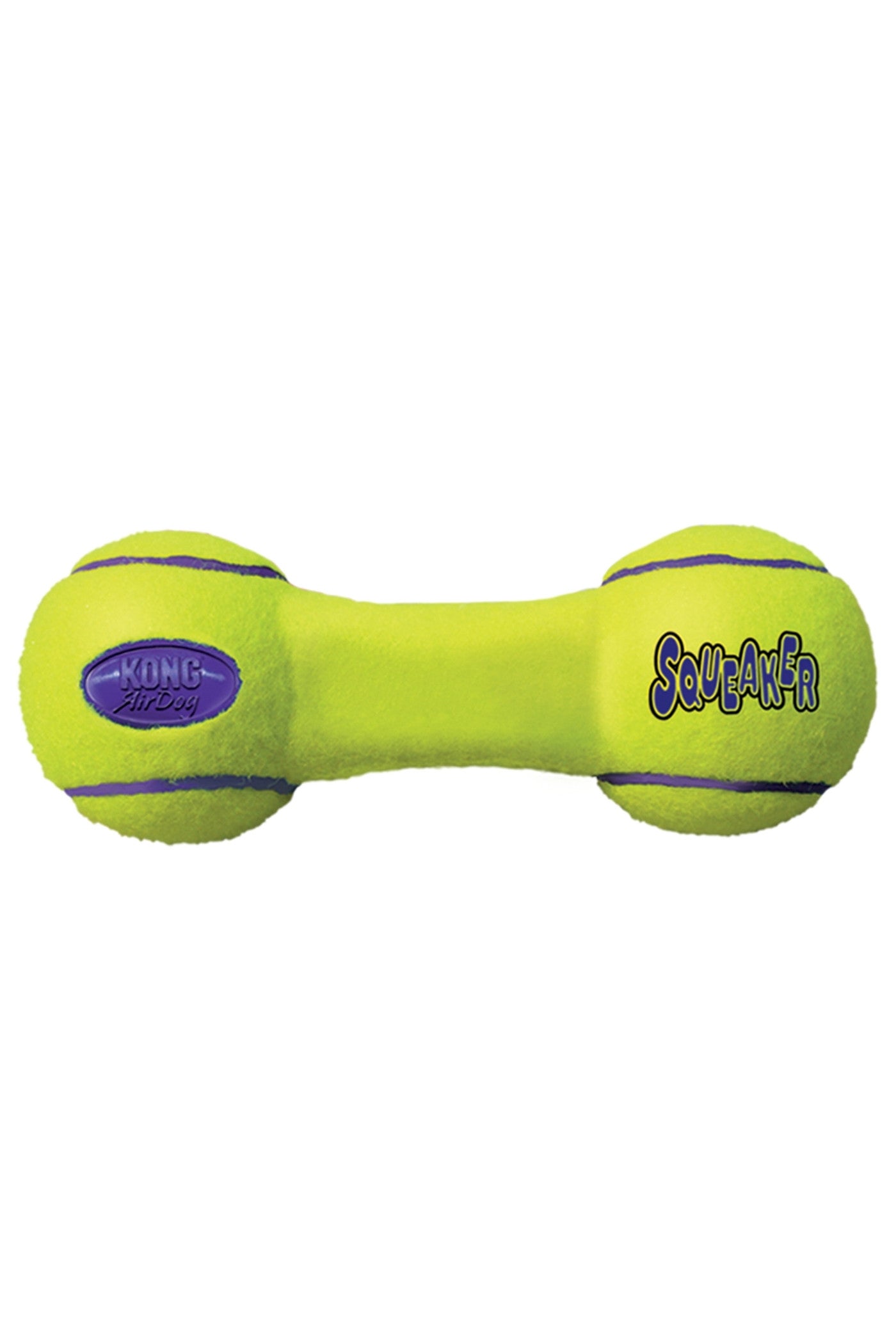 KONG AirDog® Squeaker Dumbbell combines two classic dog toys -the tennis ball and the squeaker - to create the perfect fetch toy. The non-abrasive, high-quality material will not wear down dogs’ teeth. Find your dog’s favorite AirDog® shape and let the games begin.