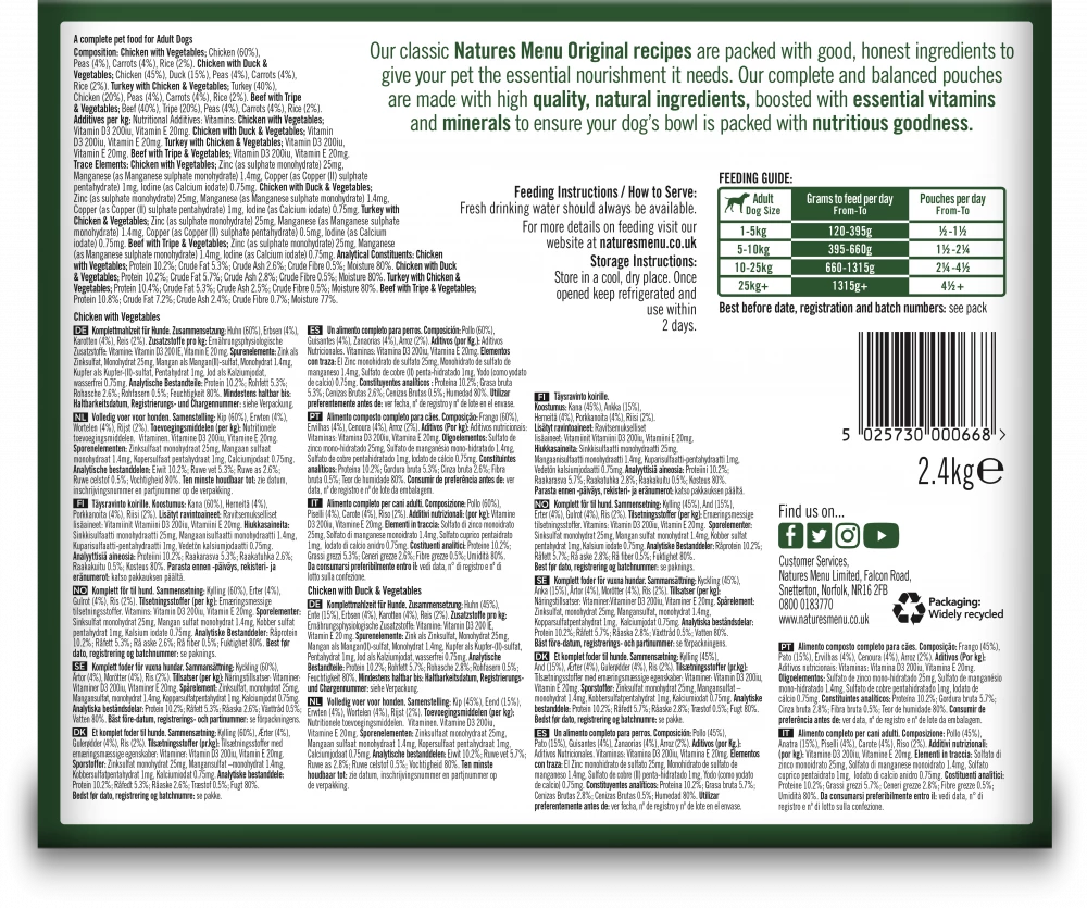 Our pouches are filled with quality ingredients, then gently cooked to ensure all the Natures Menu goodness is locked in. A great alternative to raw feeding when travelling or staying away.