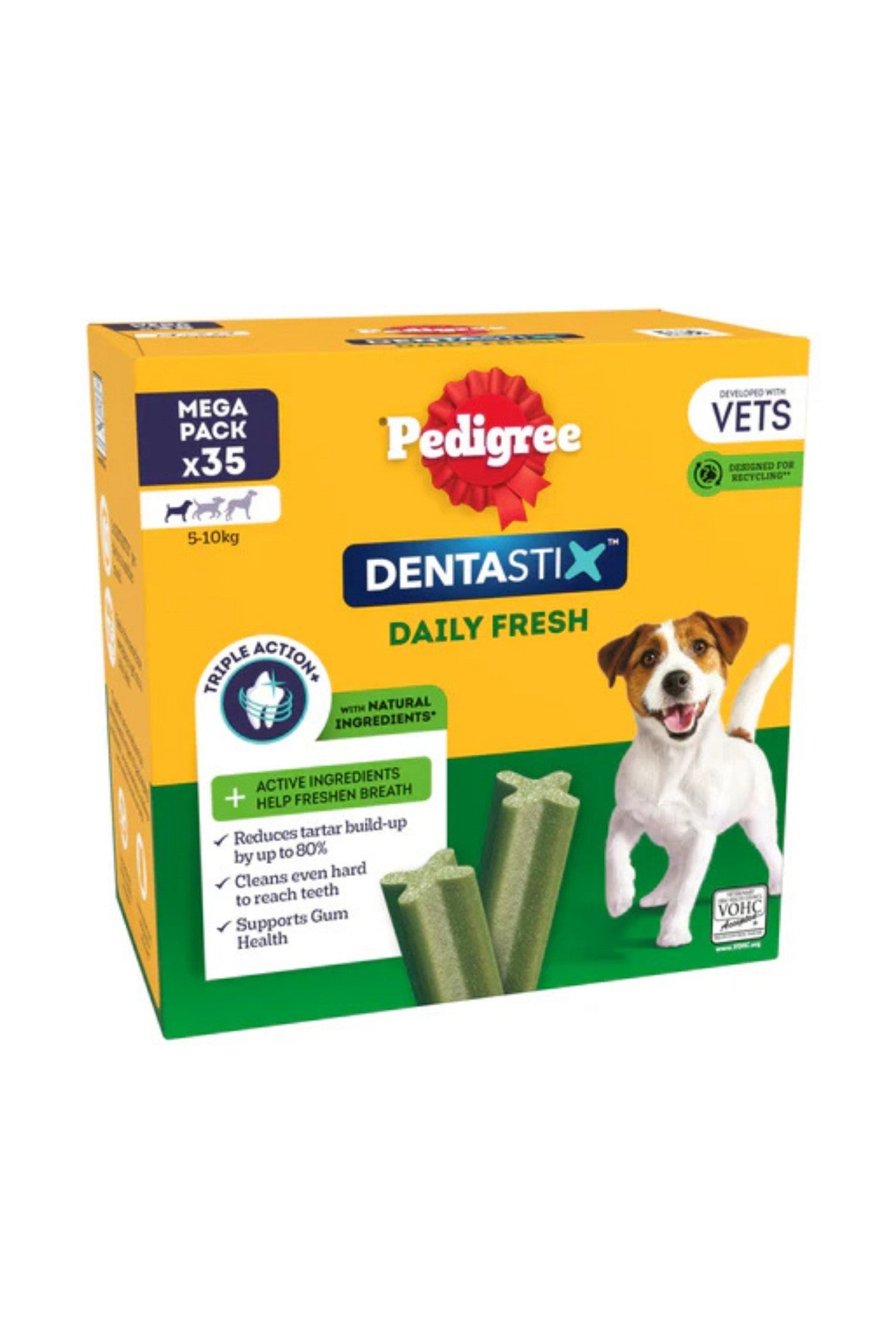 Dentastix Fresh dental chew sticks have a unique blend of green tea extract and eucalyptus oil, which are proven to help freshen breath, for pleasing close encounters with your dog.Pedigree DentaStix Daily Oral Care dog dental treats were developed with the help of vets and nutritionists at The Waltham Centre.Dentastix daily fresh dental dog chew sticks are low in fat, with no added sugar and free from artificial colours and flavours.