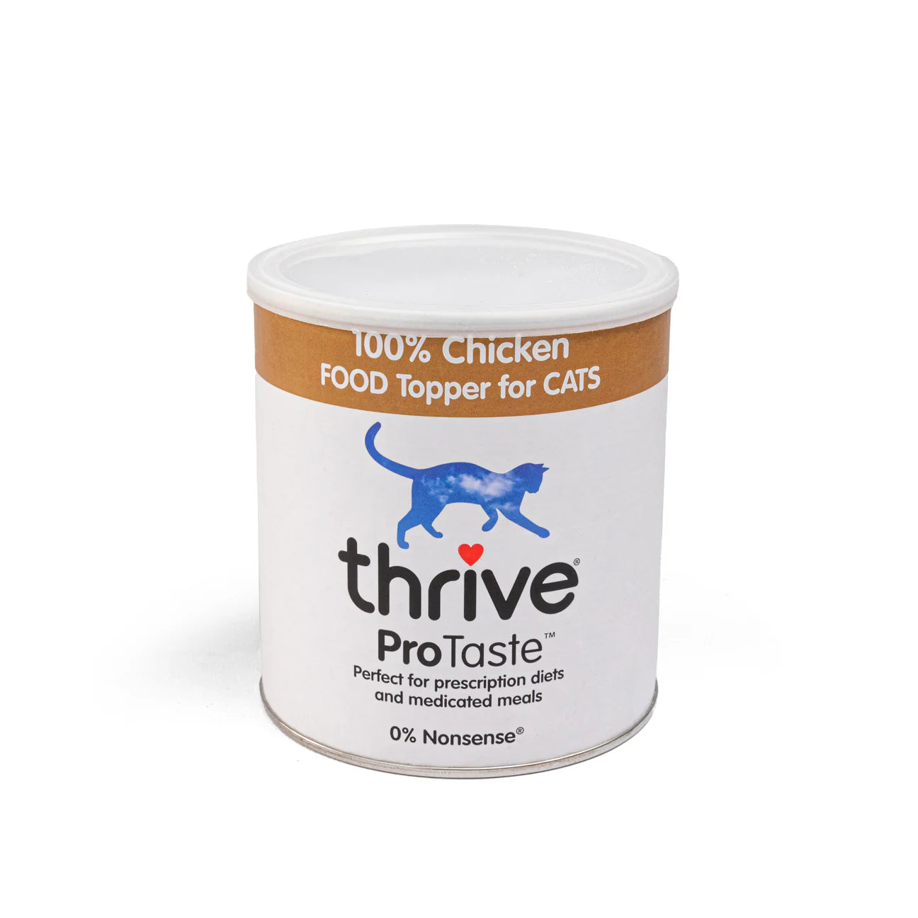 Ideal for cats on prescription diets or those requiring medicated meals, Thrive ProTaste Chicken Food Topper provides a natural and wholesome enhancement to their food. Say goodbye to bland meals and hello to a burst of flavour that your pet will love!