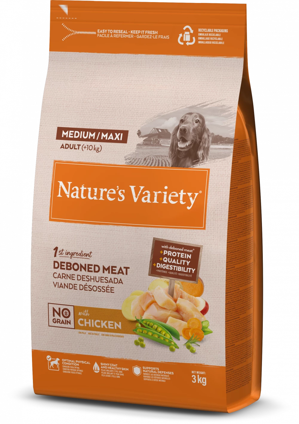 Nature's Variety Selected for medium and large-size dogs is a complete and balanced dry dog food with a difference. Its high-meat recipe features quality, deboned free range chicken as the main ingredient with a blend of wholesome fruit, vegetables and botanicals.