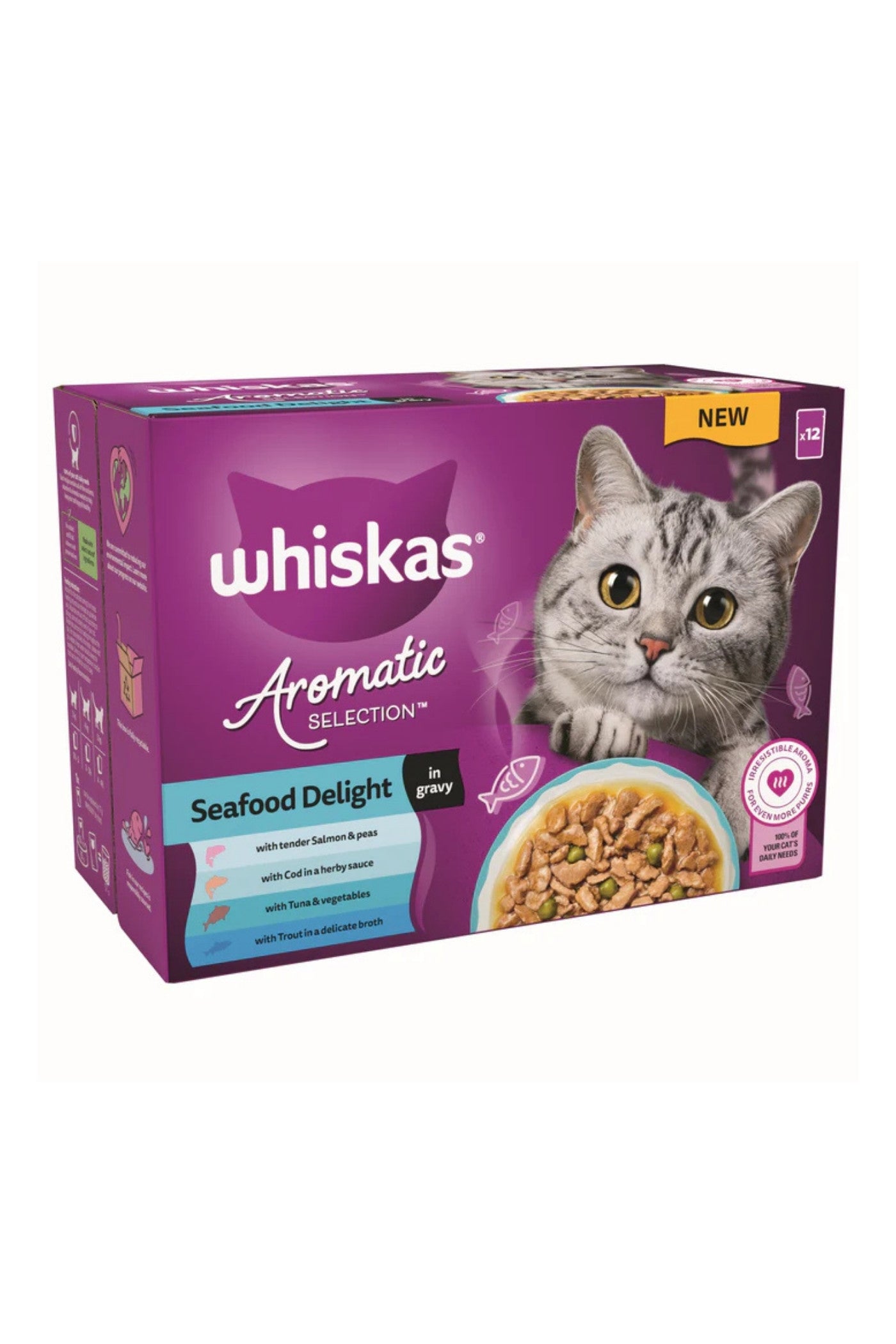 Each delicious recipe has an irresistible aroma for even more purrs WHISKAS Aromatic Selection Seafood Delight wet food pouches, unlock a world of purrfect aromatic meals for your 1+ adult cats.